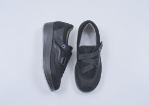 脱ぎ履きがしやすいジグザグベルトの新スタイル。日々の足のむくみやケガ等による腫れにも対応しやすい1足。