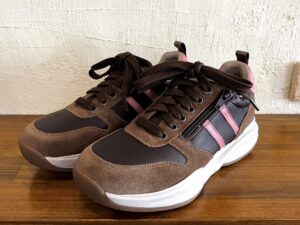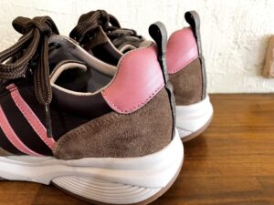 アウトソールのブラウンが全体にまとまりをもたせてくれるデザインです。